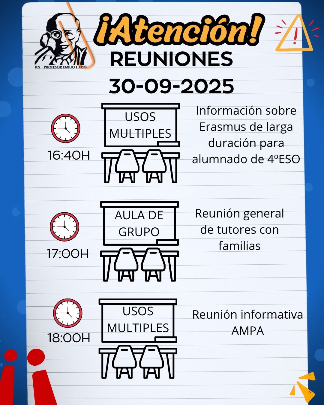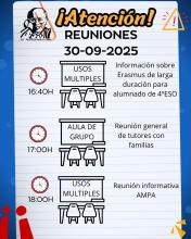 El resto de la jornada se celebrarán las reuniones de los diferentes departamentos didácticos.